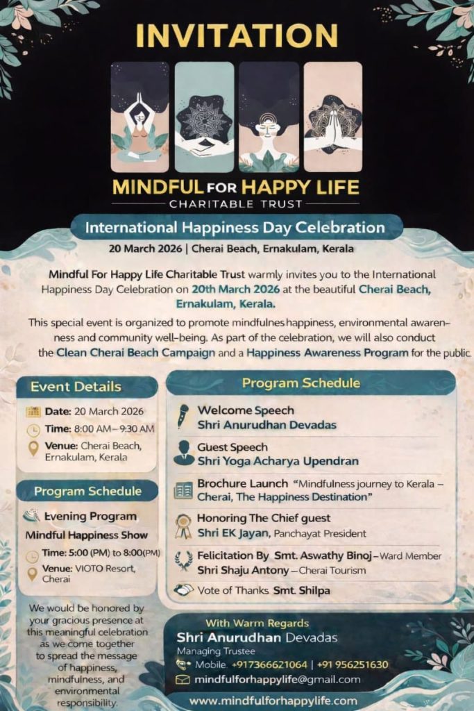 1. hi…everybody…i am personally thrilled and inspired by the happiness programme conducted by mr anurudhan devadas. Cherai is an apt place for building and enjoying Happyness anyway…all the best for your dream venture